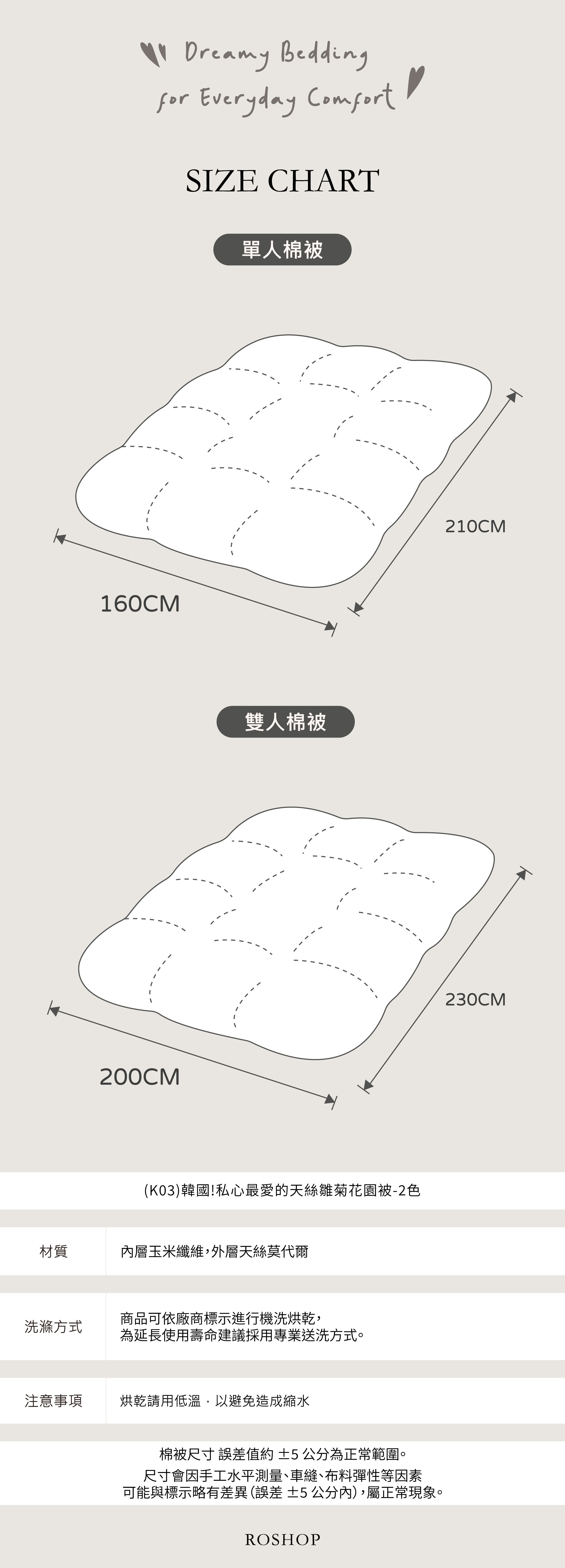 *尺寸會因手工水平測量、車縫、布料彈性等因素