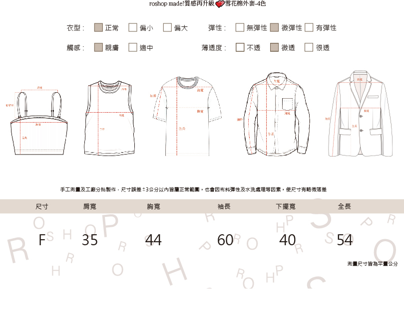 艾瑪 165/60 腰76 臀100大腿58 肩寬42 胸圍90roshop made!質感再升級💕雪花棉外套-4色