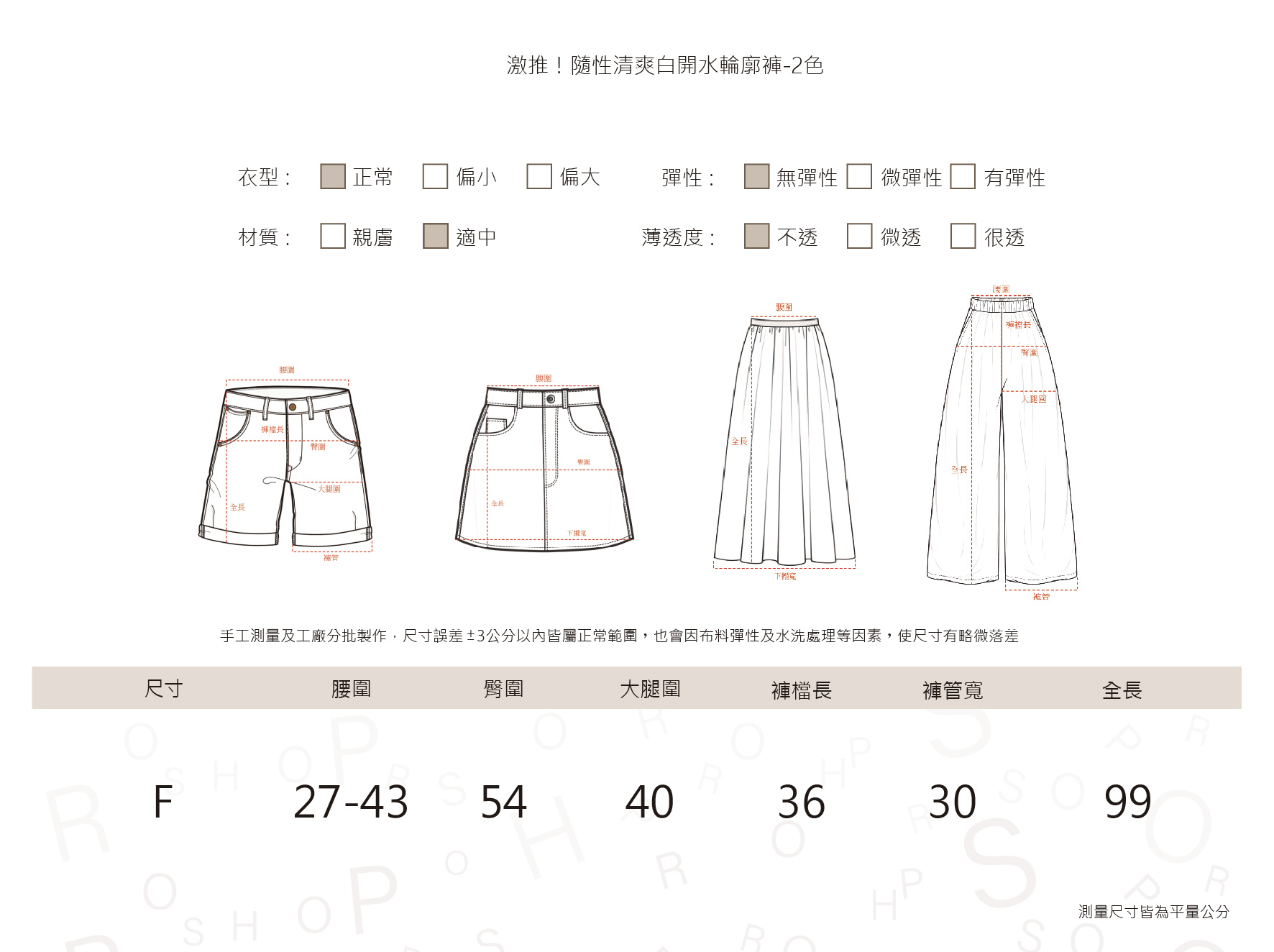 不分尺寸 鬆緊褲頭