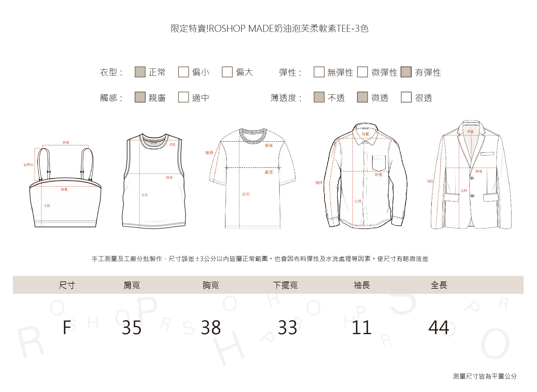 限定特賣!ROSHOP MADE奶油泡芙柔軟素TEE-3色